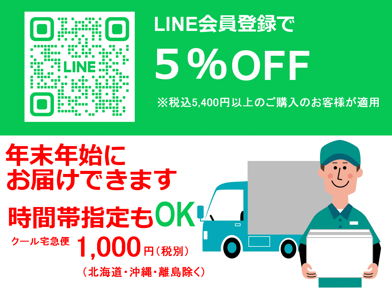 お店のLINE会員登録で5%の割引が適用されます。(税込5,400円以上のご購入で適用)