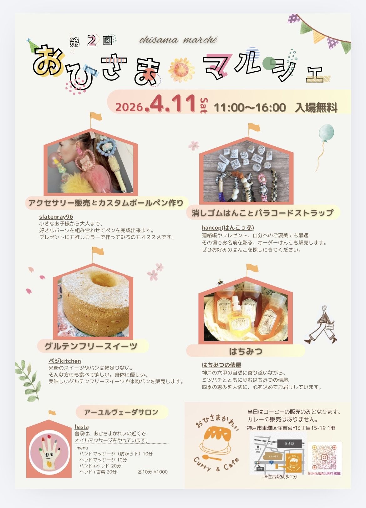 住吉「おひさまかれぃ Curry & Cafe」で、2026年4月11日(土)に「第2回おひさまマルシェ」が開催されます。