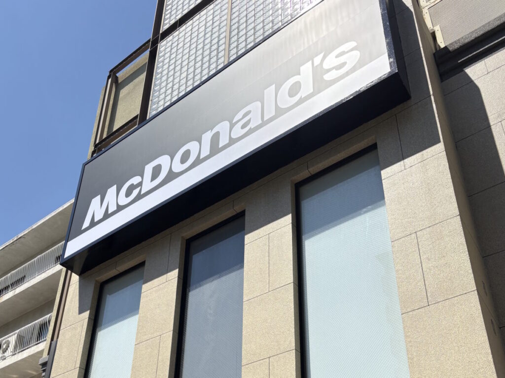 読者様より、水道筋商店街の「マクドナルド 王子公園店」に、看板が設置されました!